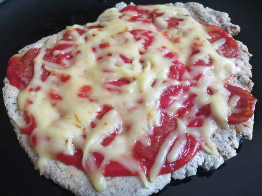 A lapot megkenjük pizzakrémmel/ketchuppal/ házi paradicsomszósszal megszórjuk reszelt violife növényi sajttal és mikrohullámú sütőben kb. 2 perc alatt ráolvasztjuk.